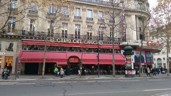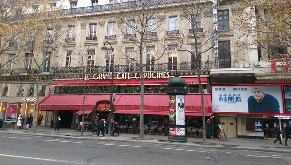 [1] 位在巴黎第九區卡普辛大道十四號(14 boulevard des Capucines)的「大咖啡館」(Le Grand Café)地下室「印度沙龍」(le Salon indien)。面對歌劇院(Opéra [ Garnier ] )————不是巴士底的那個歌劇院(Opéra [ Bastille ] )————往右邊走即可見。